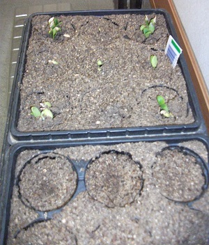こんにちは、植松です。色々種を蒔いていますが・・・・・きゅうりが発芽しました。写真下の○○は、まだ芽がでません。ダメかなー...