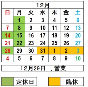 年末はご予約が混み合いやすくなりますので、早めのご予約をおすすめいたします。