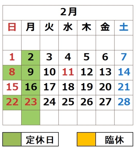 > 2026年1月カレンダ 1/4(日)から営業1/5(月)も営業です